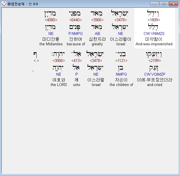 히브리어구약BHS,2 וַתָּעָז יַד־מִדְיָן עַל־יִשְׂרָאֵל מִפְּנֵי מִדְיָן עָשׂוּ לָהֶם בְּנֵי יִשְׂרָאֵל אֶת־הַמִּנְהָרֹות אֲשֶׁר בֶּהָרִים וְאֶת־הַמְּעָרֹות וְאֶת־הַמְּצָדֹות׃