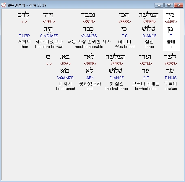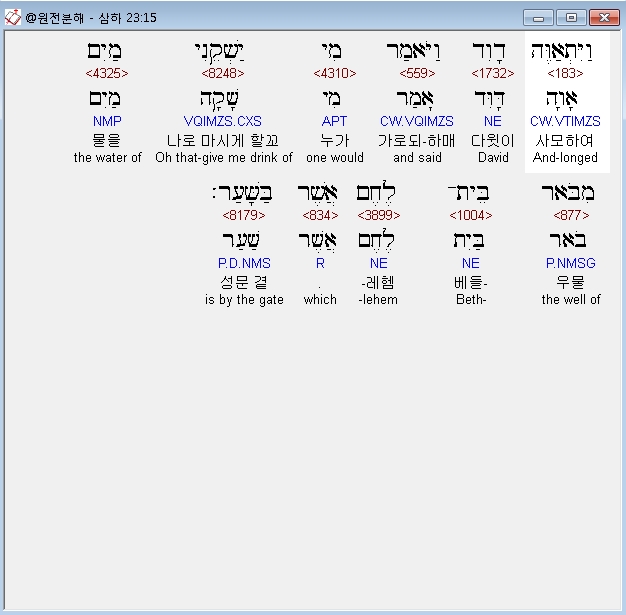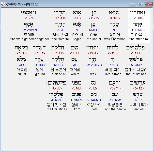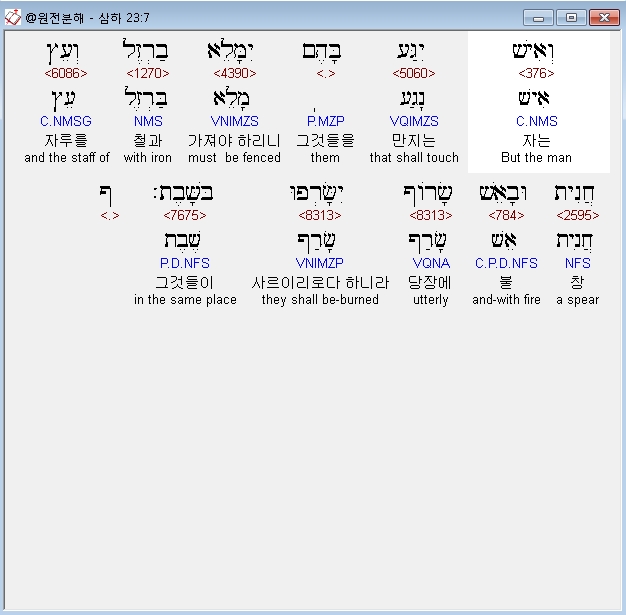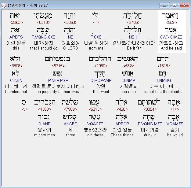 | 히브리어 사무엘하 24장 전체 원어 원문 성경 공부 주석 강해 설교 해설 해석 (0) | 2020.10.06 |