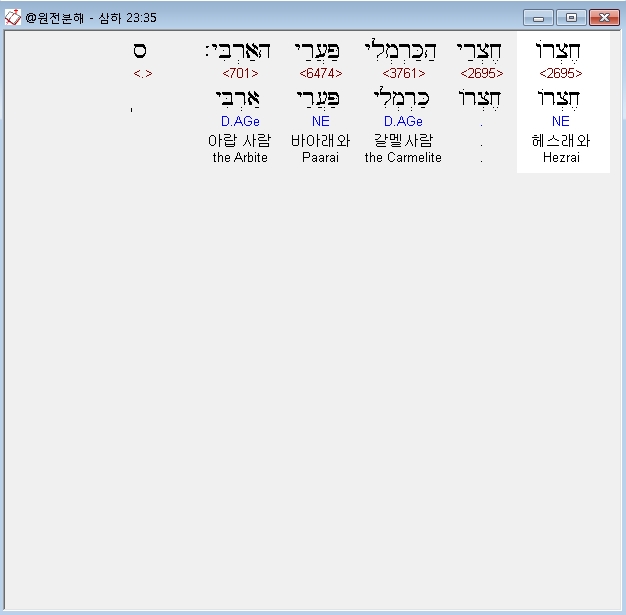 우리말성경,35 갈멜 사람 헤스래, 아랍 사람 바아래,