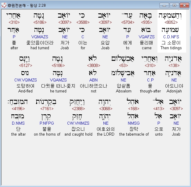 | 히브리어 열왕기상 1장 전체 원어 원문 성경 공부 주석 강해 설교 해설 해석 (0) | 2020.10.07 |