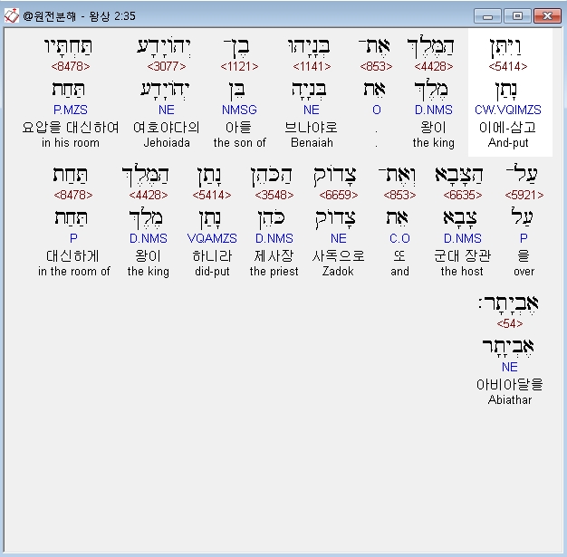 | 히브리어 열왕기상 4장 전체 원어 원문 성경 공부 주석 강해 설교 해설 해석 (0) | 2020.10.07 |