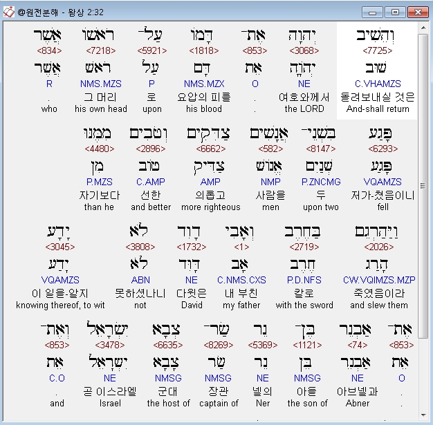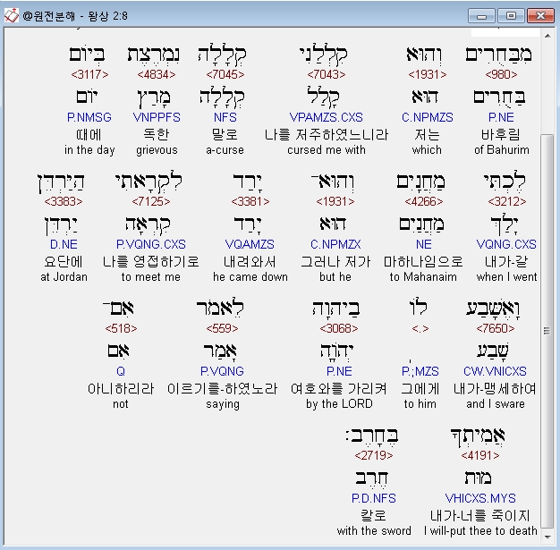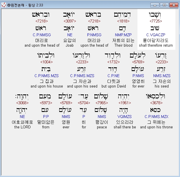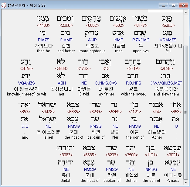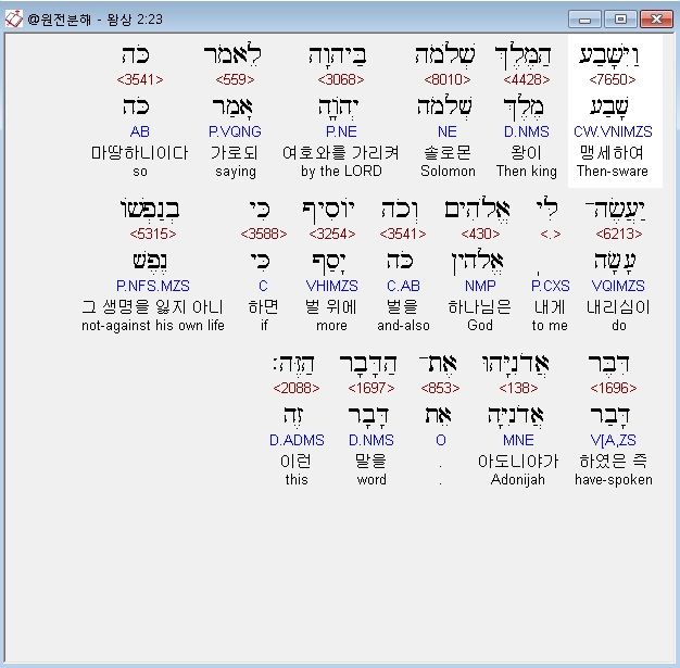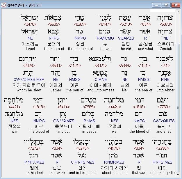 | 히브리어 사무엘하 23장 전체 원어 원문 성경 공부 주석 강해 설교 해설 해석 (0) | 2020.10.06 |
