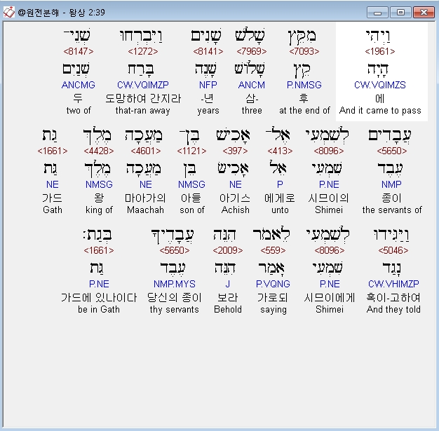 헬라어구약Septuagint,41 και απηγγελη τω σαλωμων λεγοντες οτι επορευθη σεμει εξ ιερουσαλημ εις γεθ και απεστρεψεν τους δουλους αυτου