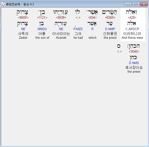 영어MSG,2 These were the leaders in his government: Azariah son of Zadok--the priest;