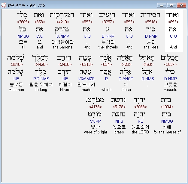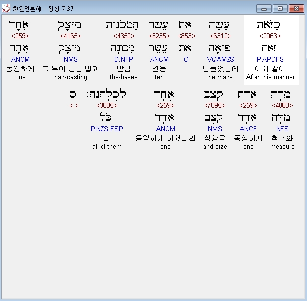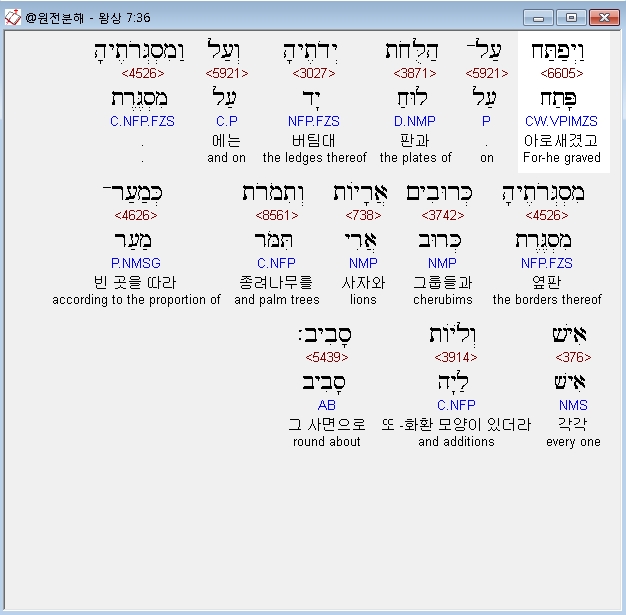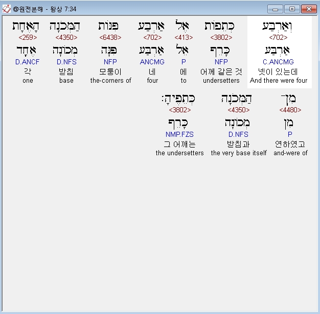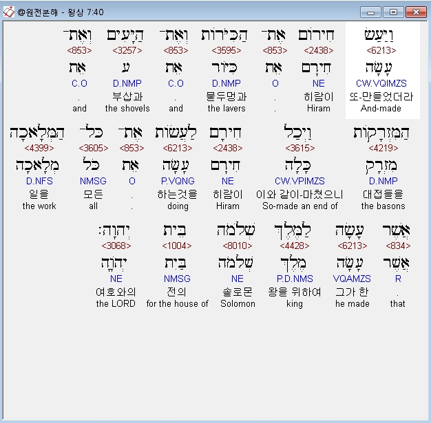 | 히브리어 열왕기상 4장 전체 원어 원문 성경 공부 주석 강해 설교 해설 해석 (0) | 2020.10.07 |