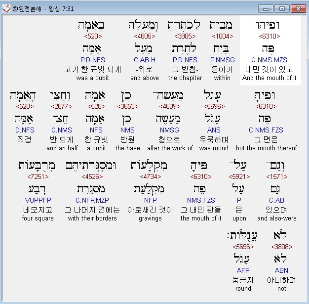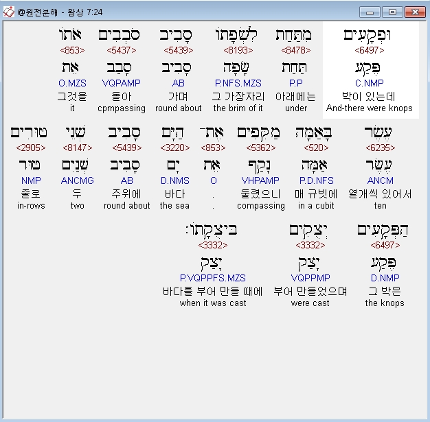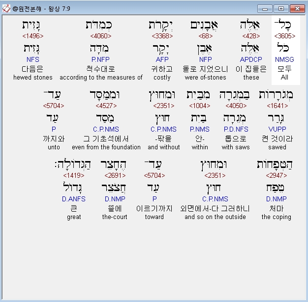 | 히브리어 열왕기상 6장 전체 원어 원문 성경 공부 주석 강해 설교 해설 해석 (0) | 2020.10.07 |