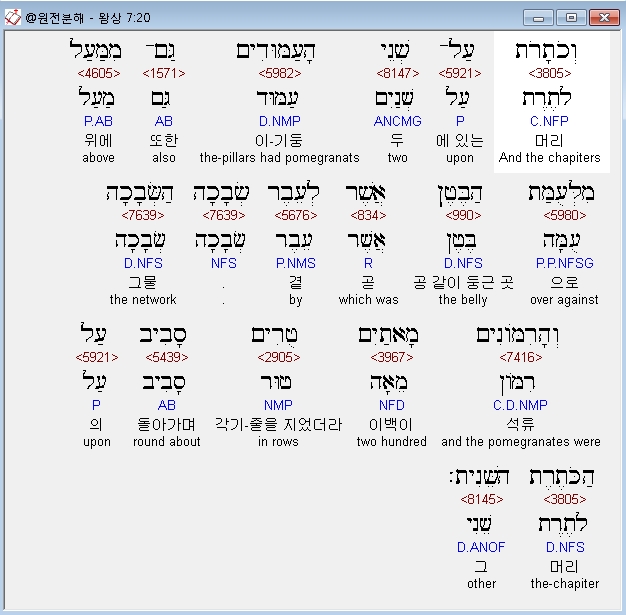 | 히브리어 열왕기상 8장 전체 원어 원문 성경 공부 주석 강해 설교 해설 해석 (0) | 2020.10.07 |