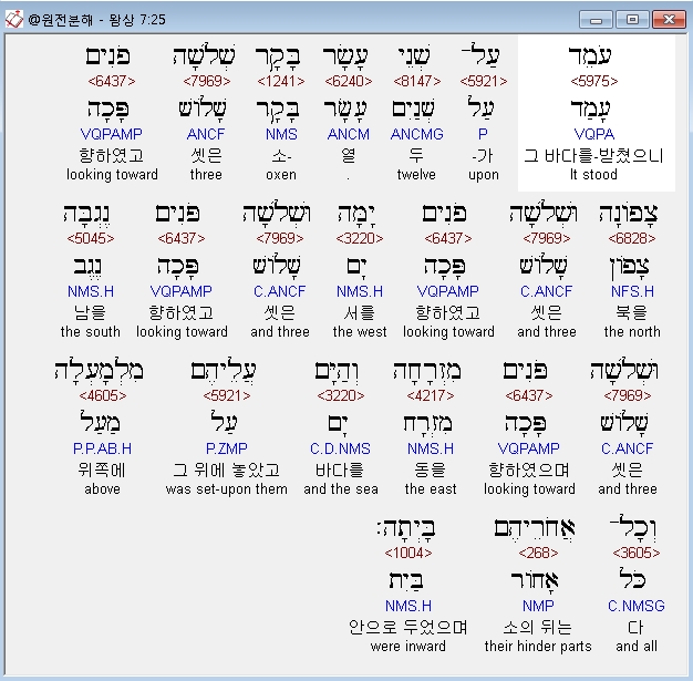 히브리어구약BHS,44 וְאֶת־הַיָּם הָאֶחָד וְאֶת־הַבָּקָר שְׁנֵים־עָשָׂר תַּחַת הַיָּם׃