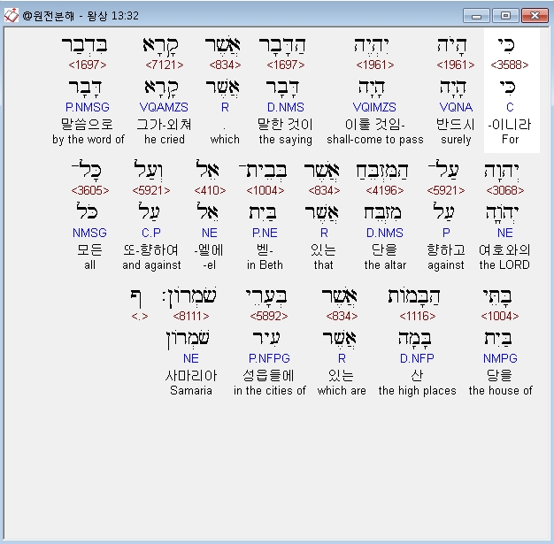 | 히브리어 열왕기상 15장 전체 원어 원문 성경 공부 주석 강해 설교 해설 해석 (0) | 2020.10.07 |