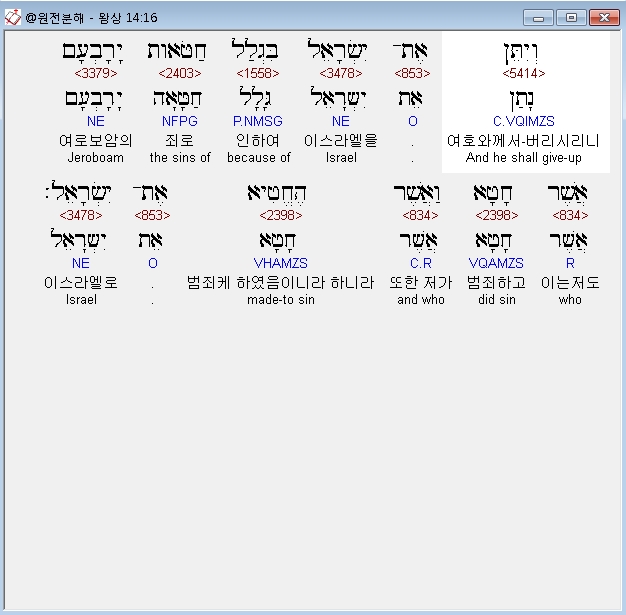 | 히브리어 열왕기상 15장 전체 원어 원문 성경 공부 주석 강해 설교 해설 해석 (0) | 2020.10.07 |