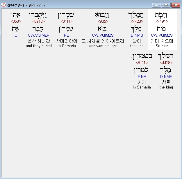 | 히브리어 열왕기상 21장 전체 원어 원문 성경 공부 주석 강해 설교 해설 해석 (0) | 2020.10.07 |