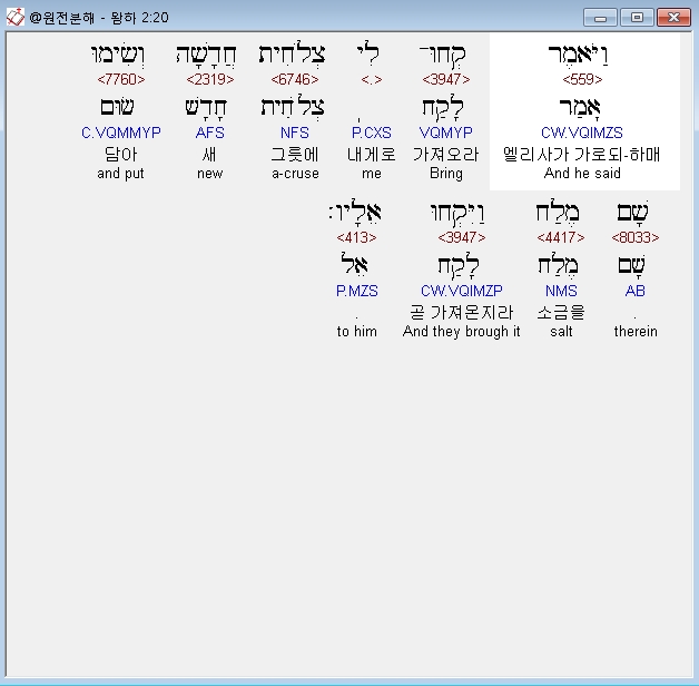 | 히브리어 열왕기하 4장 전체 원어 원문 성경 공부 주석 강해 설교 해설 해석 (0) | 2020.10.07 |