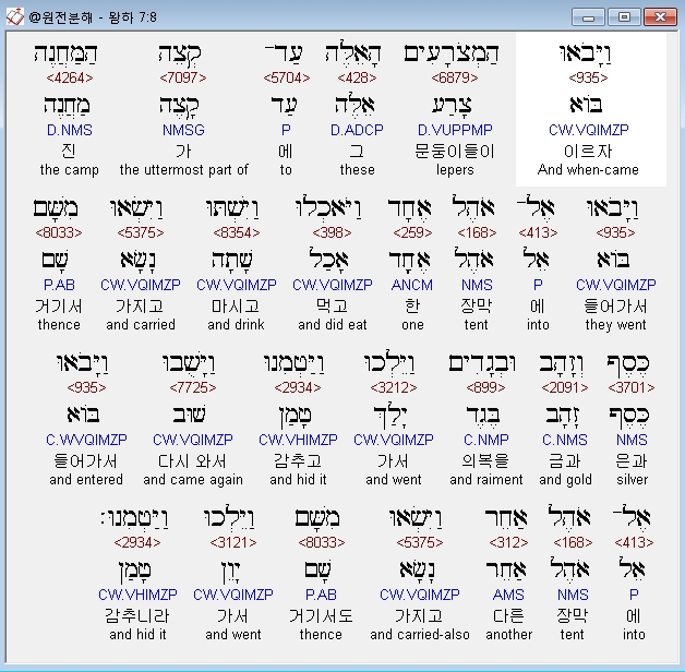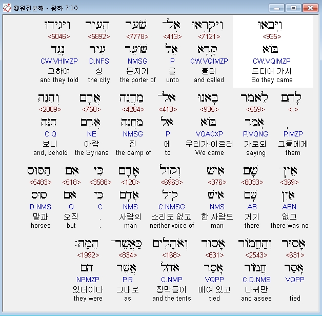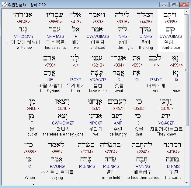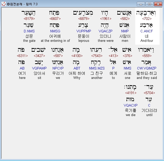 | 히브리어 열왕기하 6장 전체 원어 원문 성경 공부 주석 강해 설교 해설 해석 (0) | 2020.10.07 |