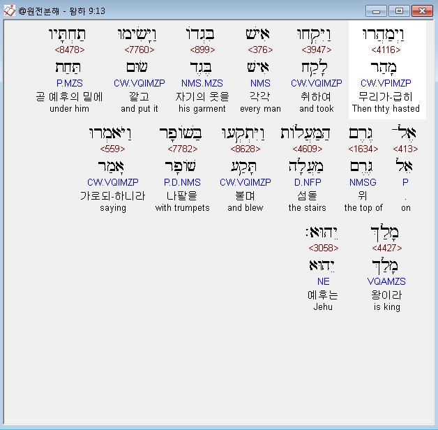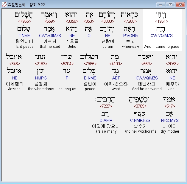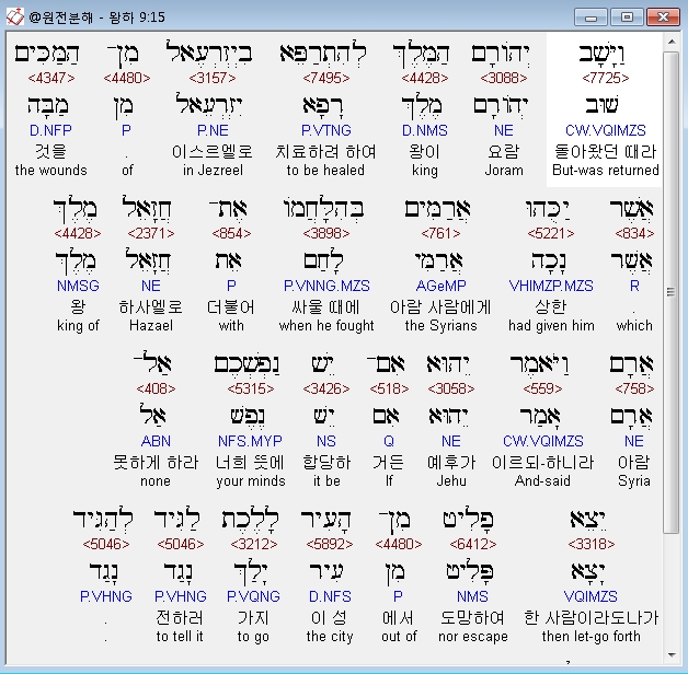 | 히브리어 열왕기하 6장 전체 원어 원문 성경 공부 주석 강해 설교 해설 해석 (0) | 2020.10.07 |