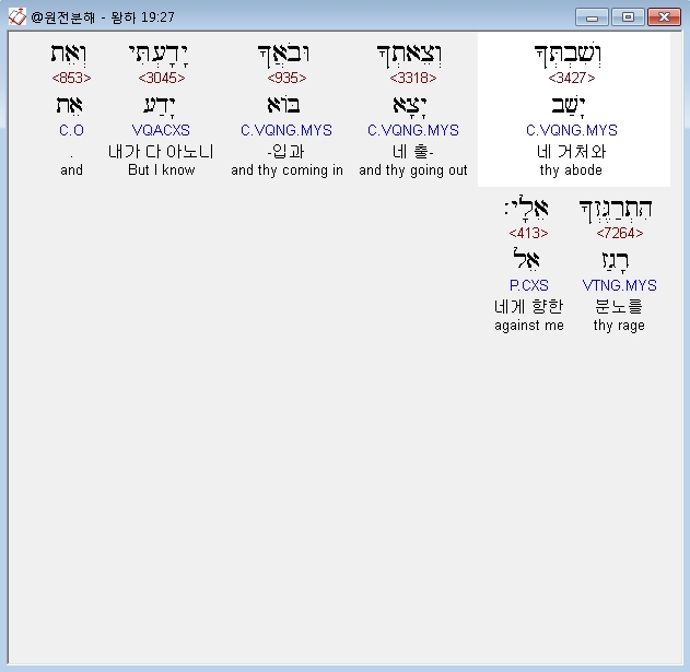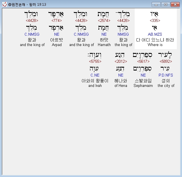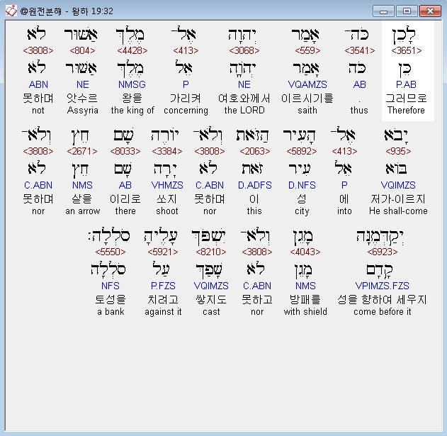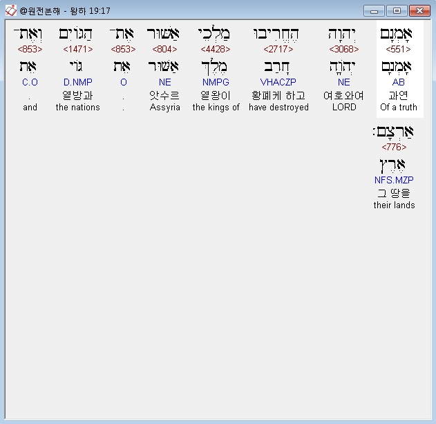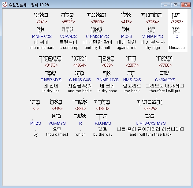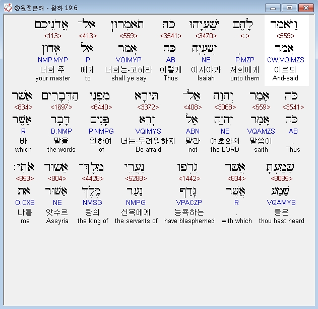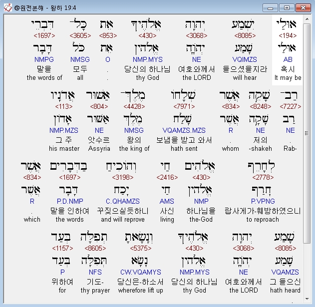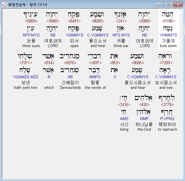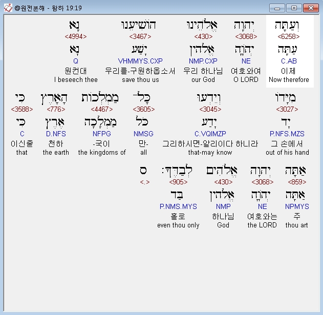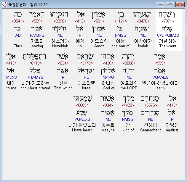 | 히브리어 열왕기하 18장 전체 원어 원문 성경 공부 주석 강해 설교 해설 해석 (0) | 2020.10.07 |