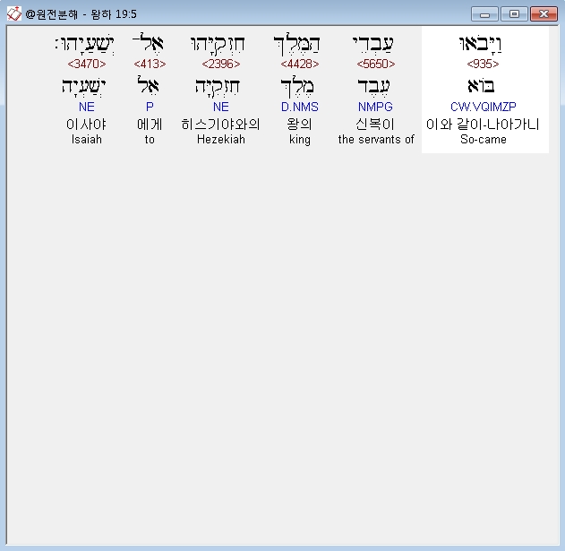 히브리어구약BHS,5 וַיָּבֹאוּ עַבְדֵי הַמֶּלֶךְ חִזְקִיָּהוּ אֶל־יְשַׁעַיָהוּ׃