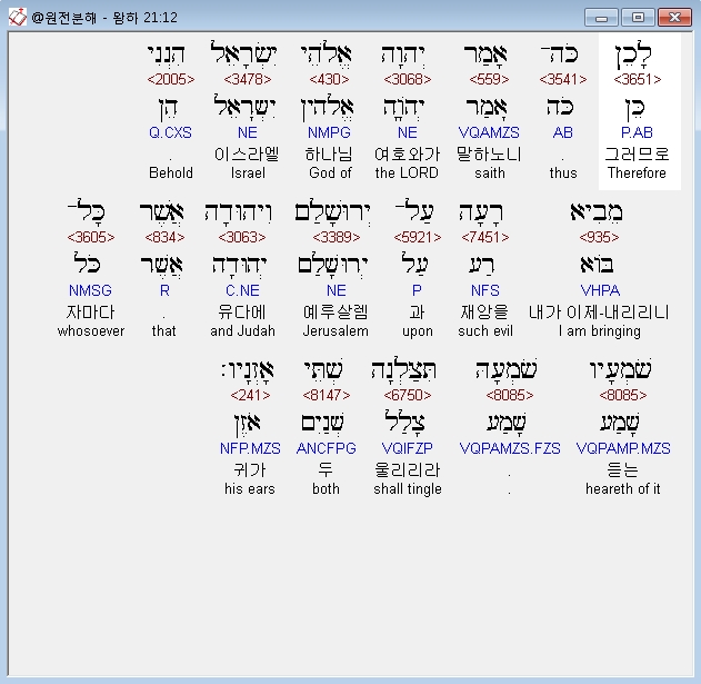 | 히브리어 열왕기하 22장 전체 원어 원문 성경 공부 주석 강해 설교 해설 해석 (0) | 2020.10.07 |