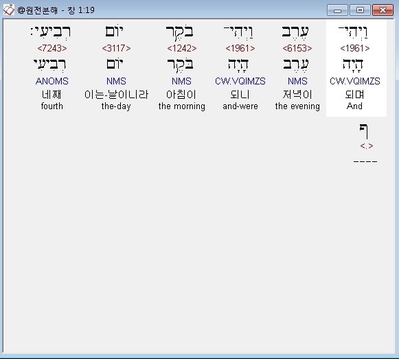 히브리어구약BHS,19 וַיְהִי־עֶרֶב וַיְהִי־בֹקֶר יֹום רְבִיעִי׃ ף