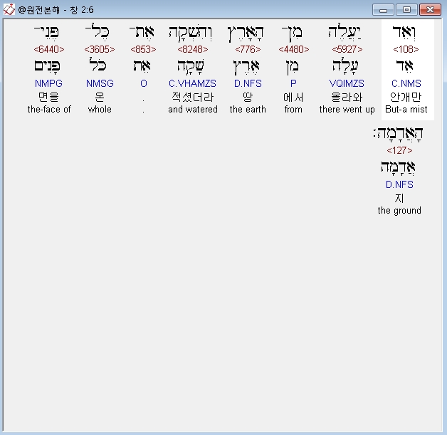 * 안개만 땅에서 올라와(וְאֵד יַעֲלֶה מִן־הָאָרֶץ - 웨에드 야아레 민 하아레츠)