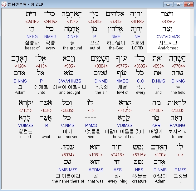 | 히브리어 창세기 2장 20절(창2:20) 원어 성경 공부 주석 강해 설교 (0) | 2023.02.20 |