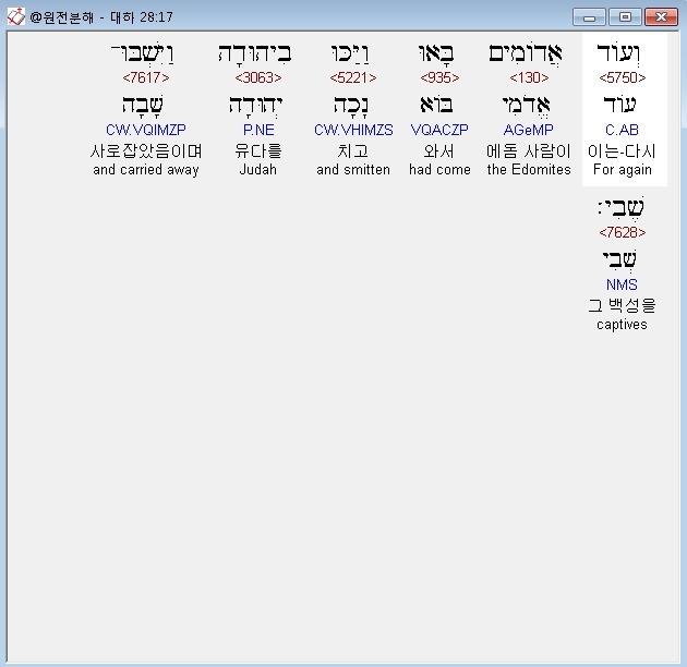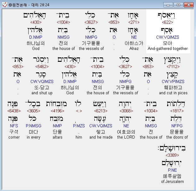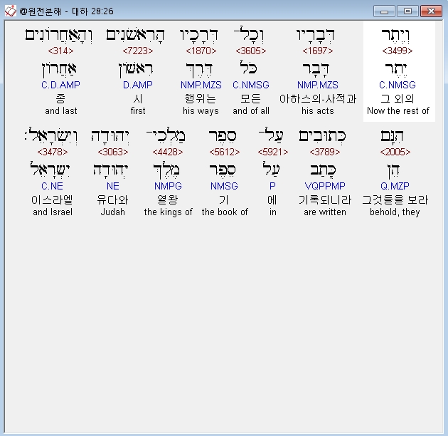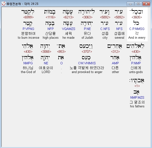 | 히브리어 역대하 25장 전체 원어 원문 성경 공부 주석 강해 설교 해설 해석 (0) | 2020.10.09 |