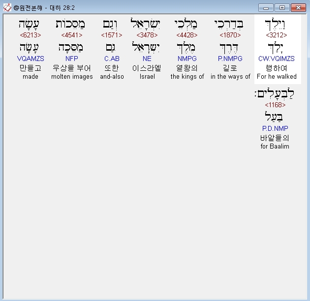 히브리어구약BHS,2 וַיֵּלֶךְ בְּדַרְכֵי מַלְכֵי יִשְׂרָאֵל וְגַם מַסֵּכֹות עָשָׂה לַבְּעָלִים׃