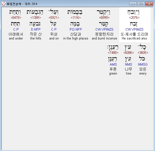 히브리어구약BHS,4 וַיְזַבֵּחַ וַיְקַטֵּר בַּבָּמֹות וְעַל־הַגְּבָעֹות וְתַחַת כָּל־עֵץ רַעֲןָן׃