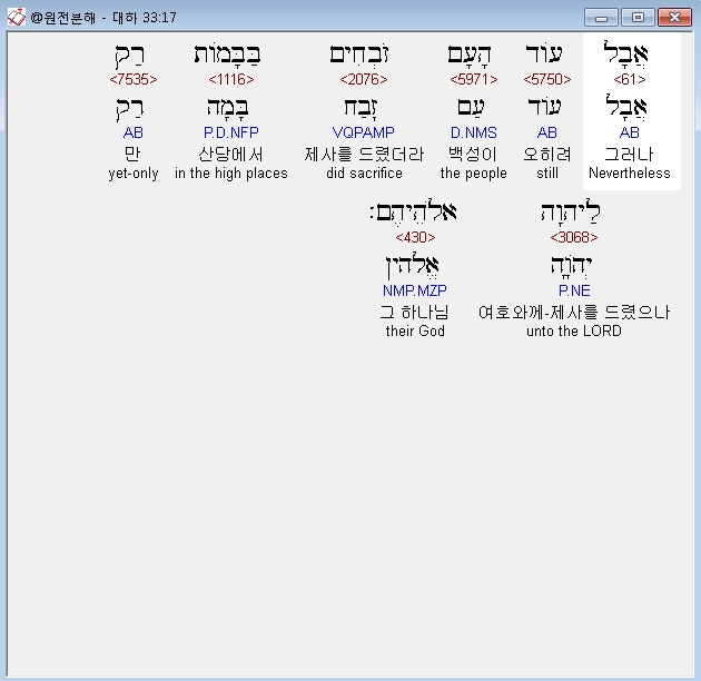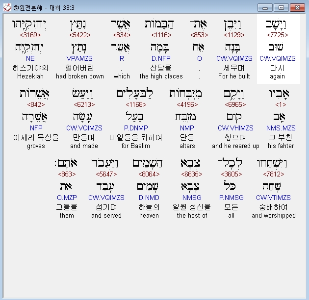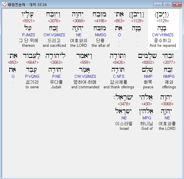 | 히브리어 역대하 35장 전체 원어 원문 성경 공부 주석 강해 설교 해설 해석 (0) | 2020.10.09 |