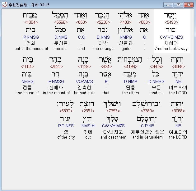 | 히브리어 역대하 31장 전체 원어 원문 성경 공부 주석 강해 설교 해설 해석 (0) | 2020.10.09 |