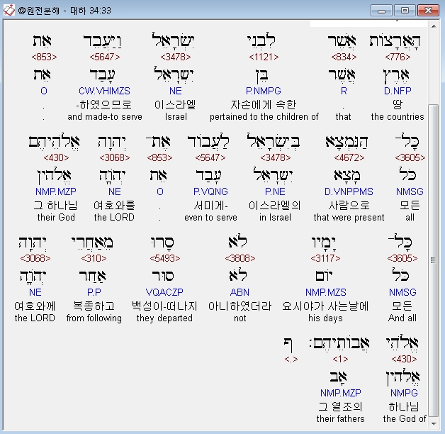 | 히브리어 역대하 33장 전체 원어 원문 성경 공부 주석 강해 설교 해설 해석 (0) | 2020.10.09 |