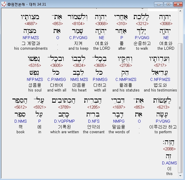 | 히브리어 역대하 31장 전체 원어 원문 성경 공부 주석 강해 설교 해설 해석 (0) | 2020.10.09 |