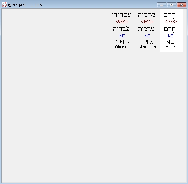 영어NRSV,5 Harim, Meremoth, Obadiah,
