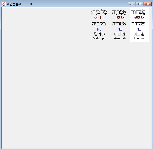 히브리어구약BHS,3 פַּשְׁחוּר אֲמַרְיָה מַלְכִּיָּה׃