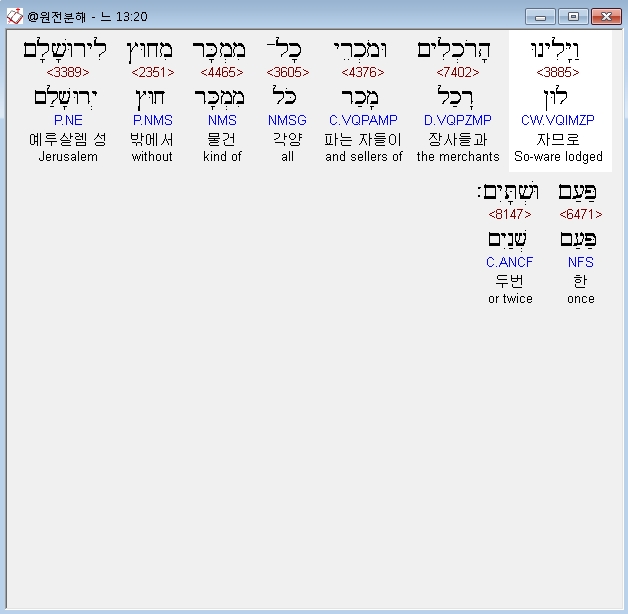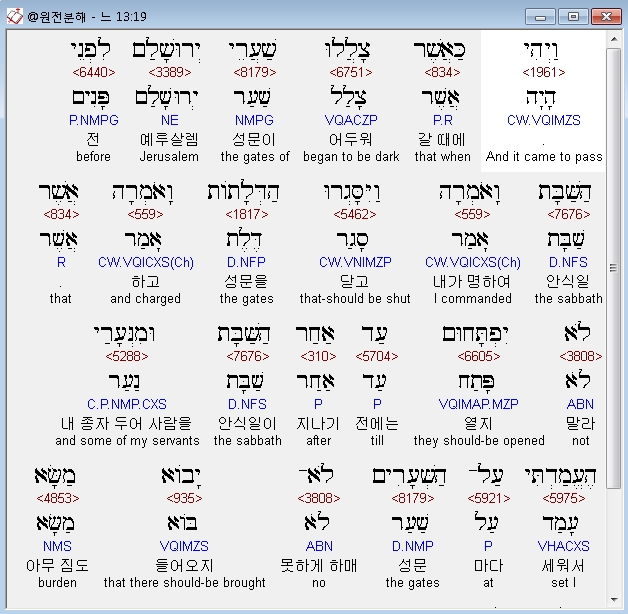 | 히브리어 느헤미야 11장 전체 원어 원문 성경 공부 주석 강해 설교 해설 해석 (0) | 2020.10.09 |