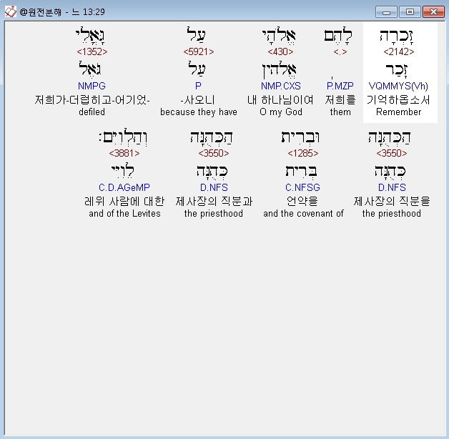 히브리어구약BHS,29 זָכְרָה לָהֶם אֱלֹהָי עַל גָּאֳלֵי הַכְּהֻנָּה וּבְרִית הַכְּהֻנָּה וְהַלְוִיִּם׃