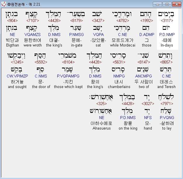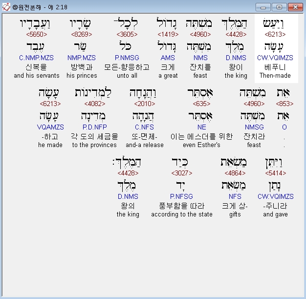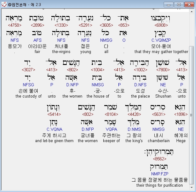 | 히브리어 에스더 3장 전체 원어 원문 성경 공부 주석 강해 설교 해설 해석 (0) | 2020.10.10 |