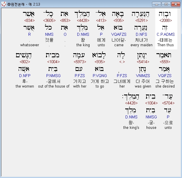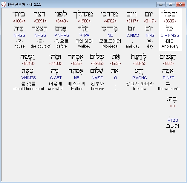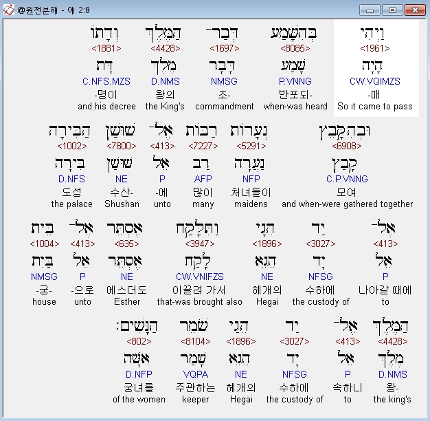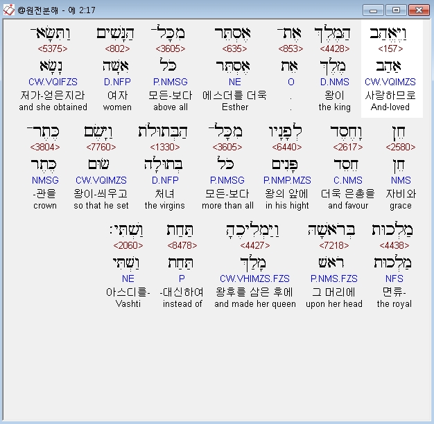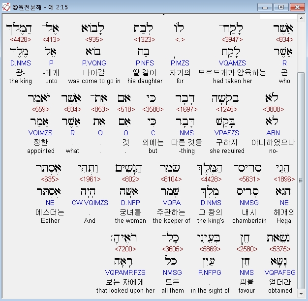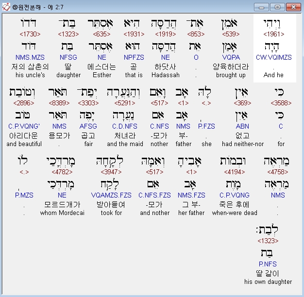 | 히브리어 에스더 1장 전체 원어 원문 성경 공부 주석 강해 설교 해설 해석 (0) | 2020.10.10 |