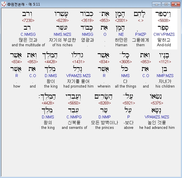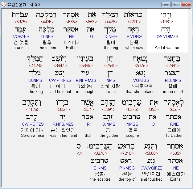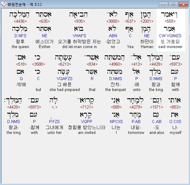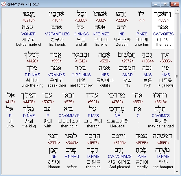 | 히브리어 에스더 7장 전체 원어 원문 성경 공부 주석 강해 설교 해설 해석 (0) | 2020.10.10 |