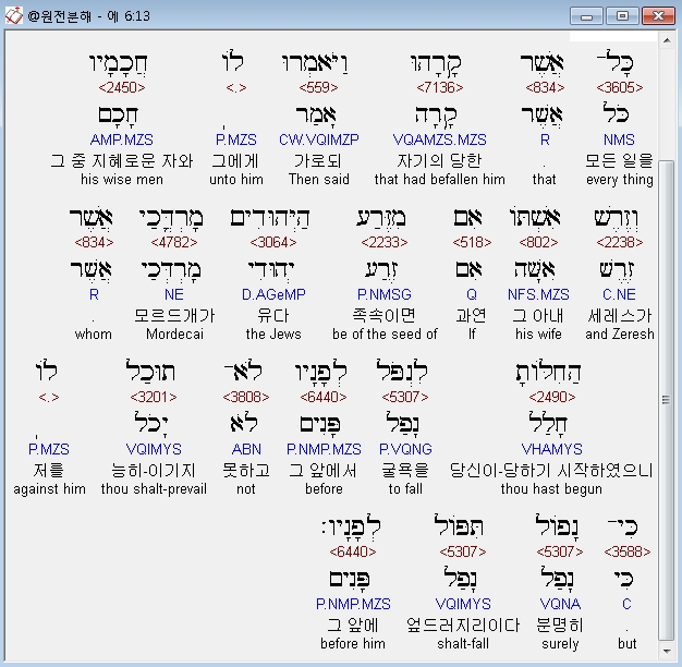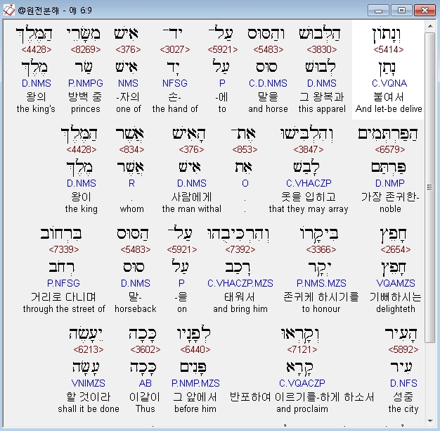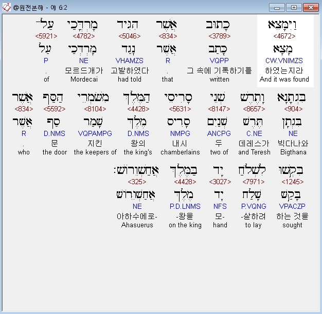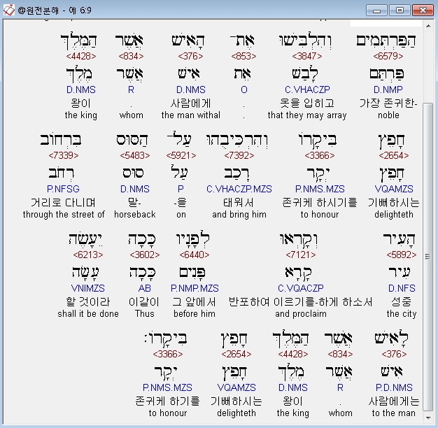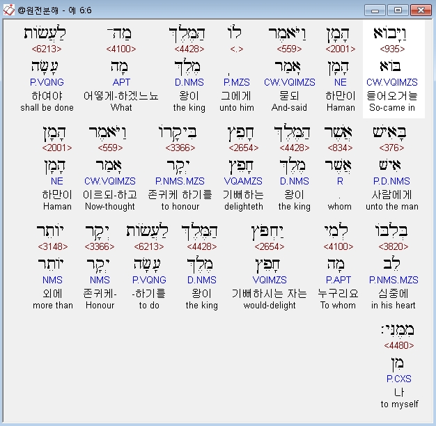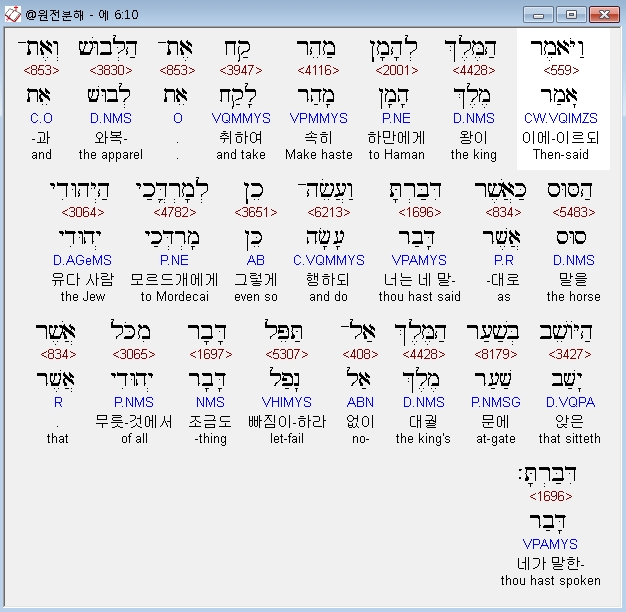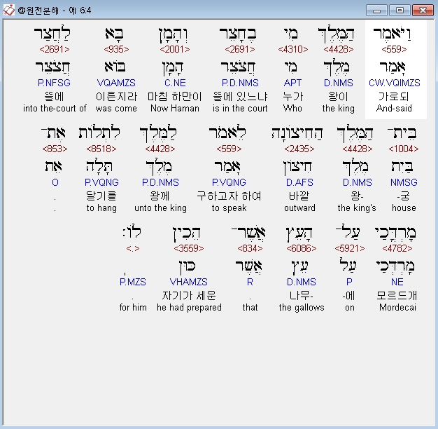 | 히브리어 에스더 7장 전체 원어 원문 성경 공부 주석 강해 설교 해설 해석 (0) | 2020.10.10 |