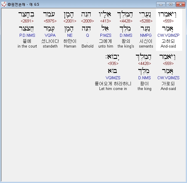 | 히브리어 에스더 5장 전체 원어 원문 성경 공부 주석 강해 설교 해설 해석 (0) | 2020.10.10 |