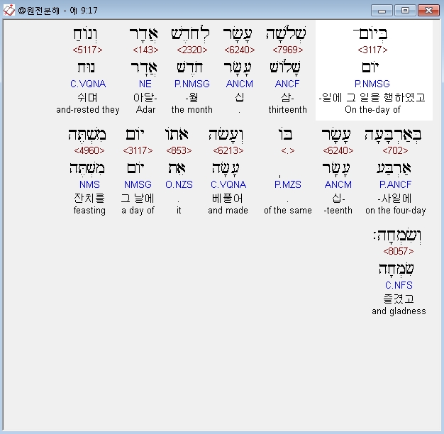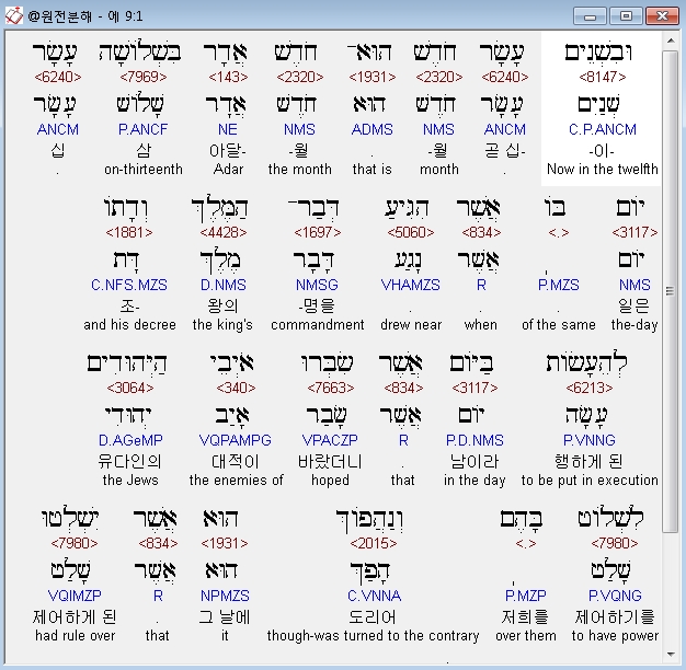| 히브리어 에스더 8장 전체 원어 원문 성경 공부 주석 강해 설교 해설 해석 (0) | 2020.10.10 |