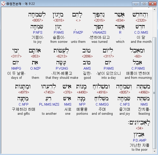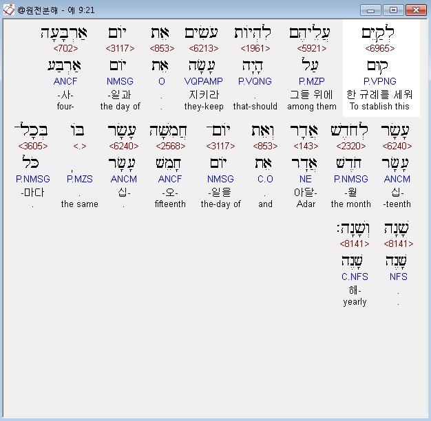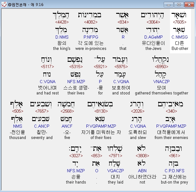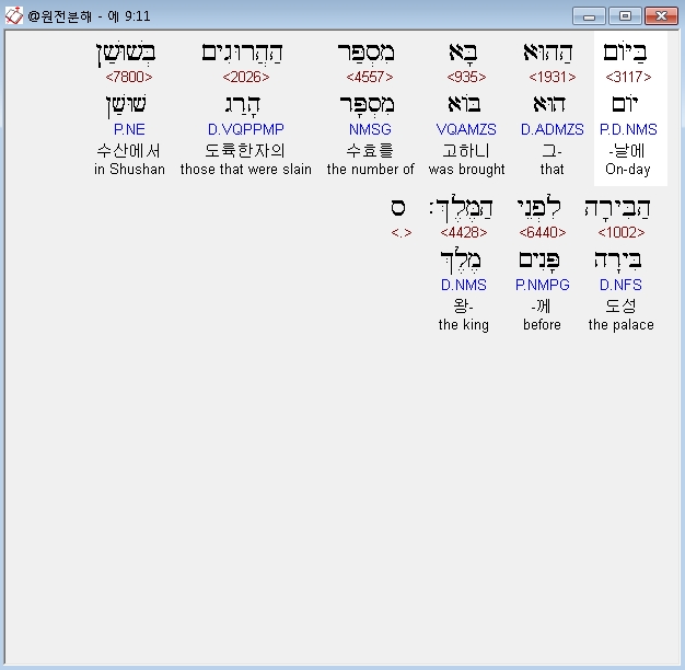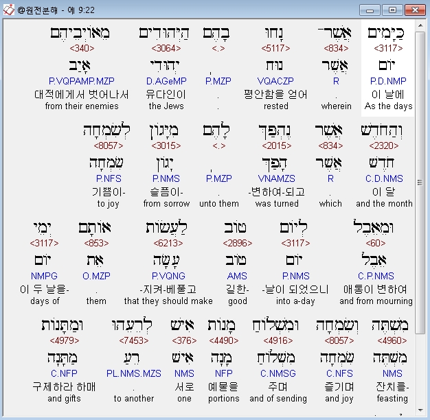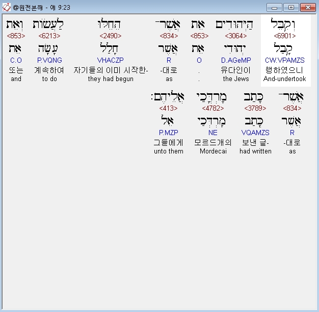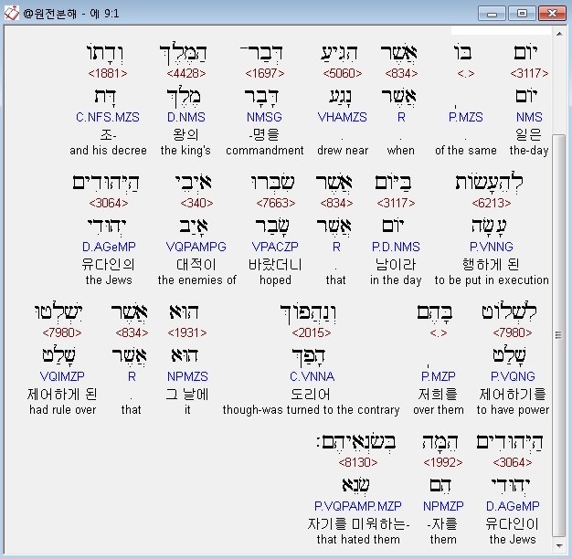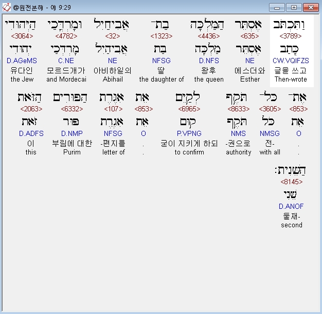 | 히브리어 에스더 10장 전체 원어 원문 성경 공부 주석 강해 설교 해설 해석 (0) | 2020.10.10 |