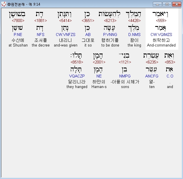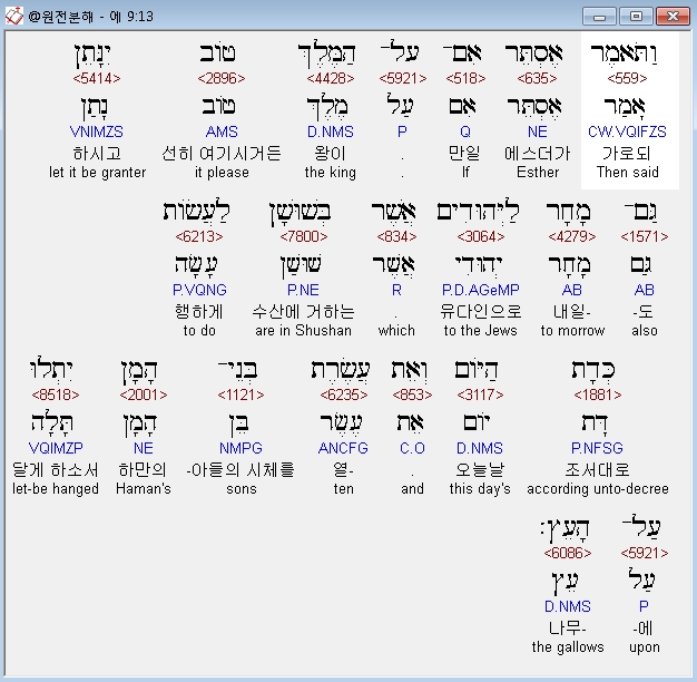 | 히브리어 에스더 7장 전체 원어 원문 성경 공부 주석 강해 설교 해설 해석 (0) | 2020.10.10 |