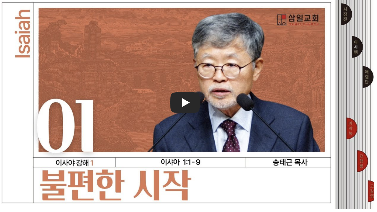 이사야서에는 총 66장이 있습니다. 성경의 전체 권수는 66권인데, 이 숫자적 유사성 외에도 이사야서와 성경의 구조적 유사점이 있습니다. 성경은 구약 39권과 신약 27권으로 구성되어 있습니다. 구약은 인간이 율법 아래에서 심판받고, 신약은 예수 그리스도를 통한 구원의 메시지를 담고 있습니다. 이사야서도 비슷한 구조로 되어 있습니다. 이사야서의 1장부터 39장까지는 심판의 메시지가 주를 이루고, 40장부터 마지막 장까지는 하나님께서 어떻게 이스라엘을 회복시키고 소망을 주실 것인지를 다루고 있습니다. 이사야서는 성경의 큰 주제를 따라 심판과 구원의 메시지를 전하고 있는 것입니다.