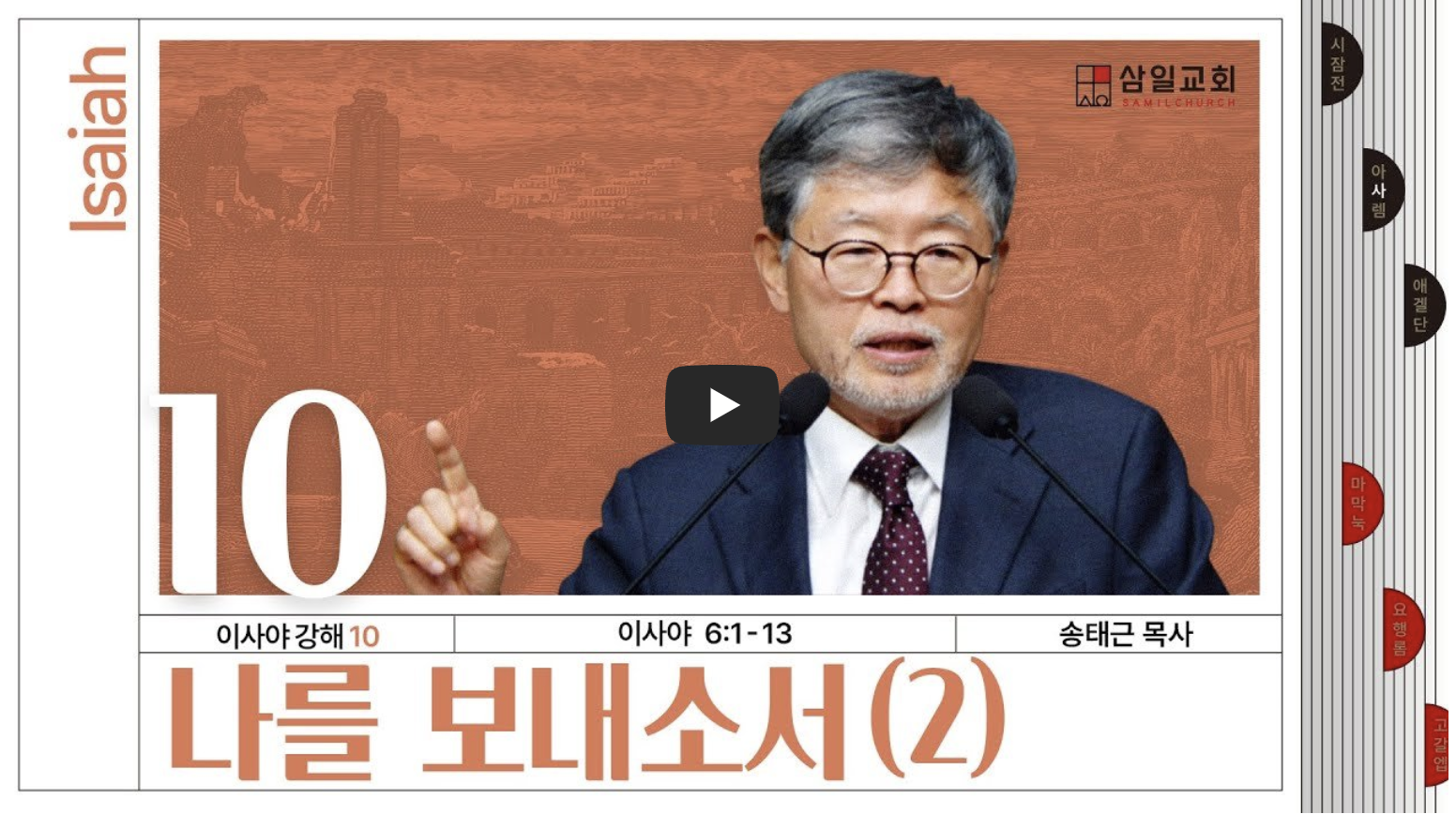 오늘 우리는 지난주 본문을 다시 펼쳐 보았습니다. 지난주에는 우시아 왕이 52년에 죽으면서 유다의 권력이 무너졌다는 이야기를 나눴습니다. 부국강병을 이루었던 강력한 절대 권력이 무너지는 순간, 세상은 매우 혼란스러웠습니다. 유다는 마치 절단된 듯한 상황에서 온 나라가 대혼란에 빠졌을 때, 한 사람이 성전에 들어가 앉았습니다. 그 사람이 바로 이사야였습니다.