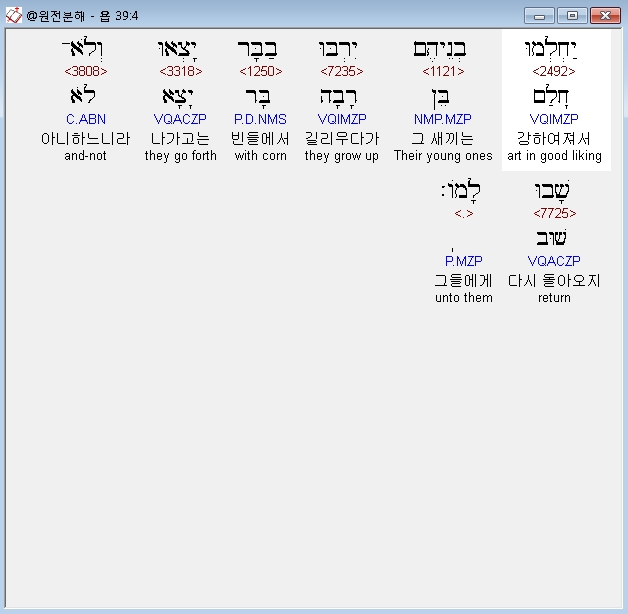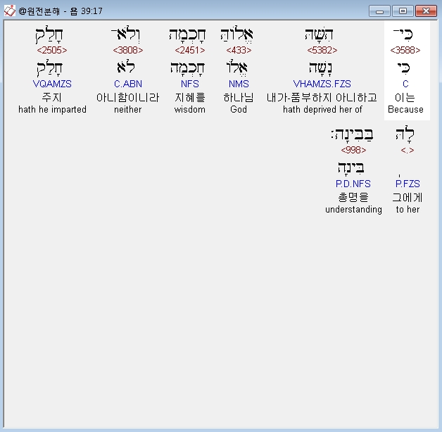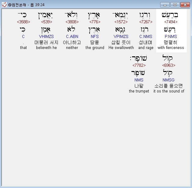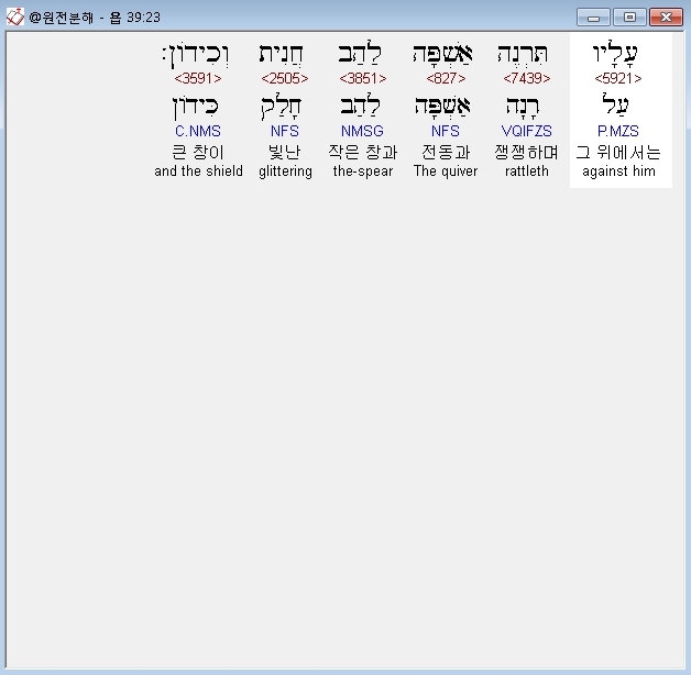 | 히브리어 욥기 38장 전체 원어 원문 성경 공부 주석 강해 설교 해설 해석 (0) | 2020.10.11 |