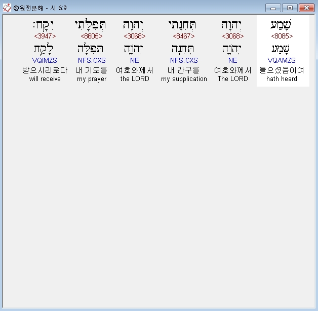 히브리어구약BHS,9 שָׁמַע יְהוָה תְּחִנָּתִי יְהוָה תְּפִלָּתִי יִקָּח׃