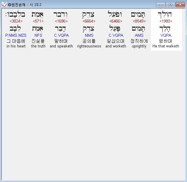 히브리어구약BHS,2 הֹולֵךְ תָּמִים וּפֹעֵל צֶדֶק וְדֹבֵר אֱמֶת בִּלְבָבֹו׃