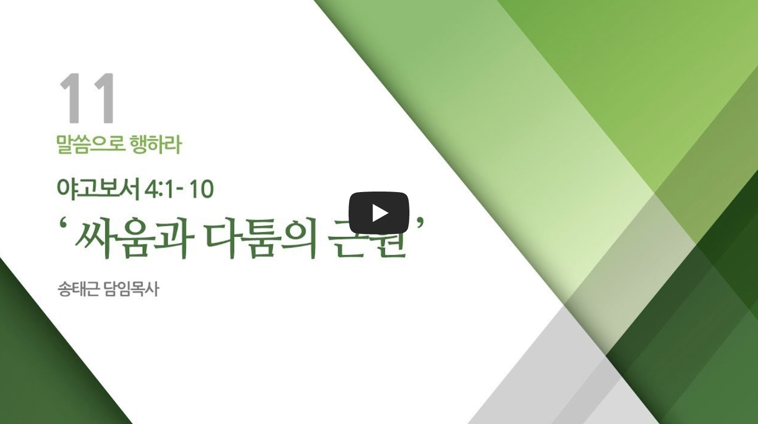 오늘 말씀의 제목은 '싸움과 다툼의 근원'입니다. 이 주제는 인류 역사상 모든 개인, 공동체, 국가와 국가 간의 갈등에 적용될 수 있는 문제입니다. 아무리 작은 싸움이라도 모두가 이 큰 싸움과 다툼이라는 주제에서 벗어날 수 없습니다. 양상은 조금씩 다를 수 있지만, 우리는 이 주제를 두 가지 차원에서 다뤄보겠습니다.