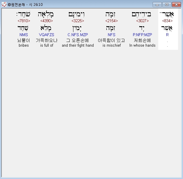 히브리어구약BHS,10 אֲשֶׁר־בִּידֵיהֶם זִמָּה וִימִינָם מָלְאָה שֹּׁחַד׃